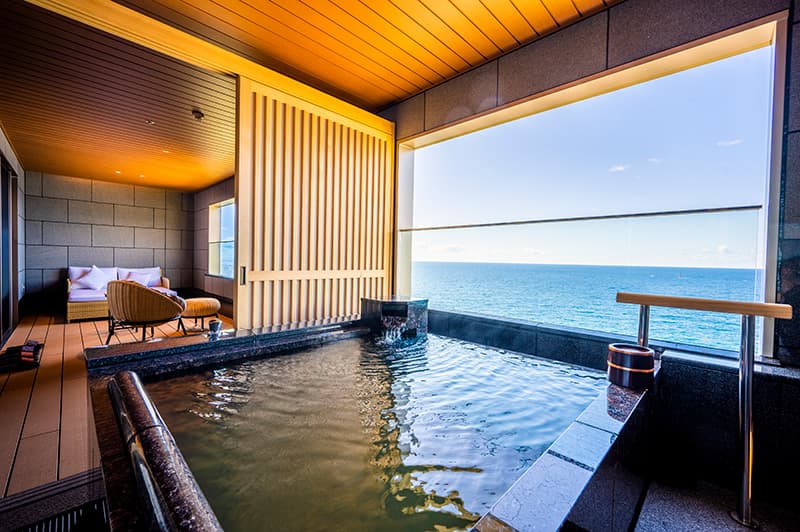 佐渡随一の美しい自然美に包まれる全室オーシャンフロントのラグジュアリー温泉ホテル。 水盤・海・夕陽の刻々と移ろう自然美をご堪能いただけます。 天然温泉や、四季折々の旬の料理で心身をデトックス。 海が心を癒す宿、何度でも泊まりたい心潤す至福のひとときを。